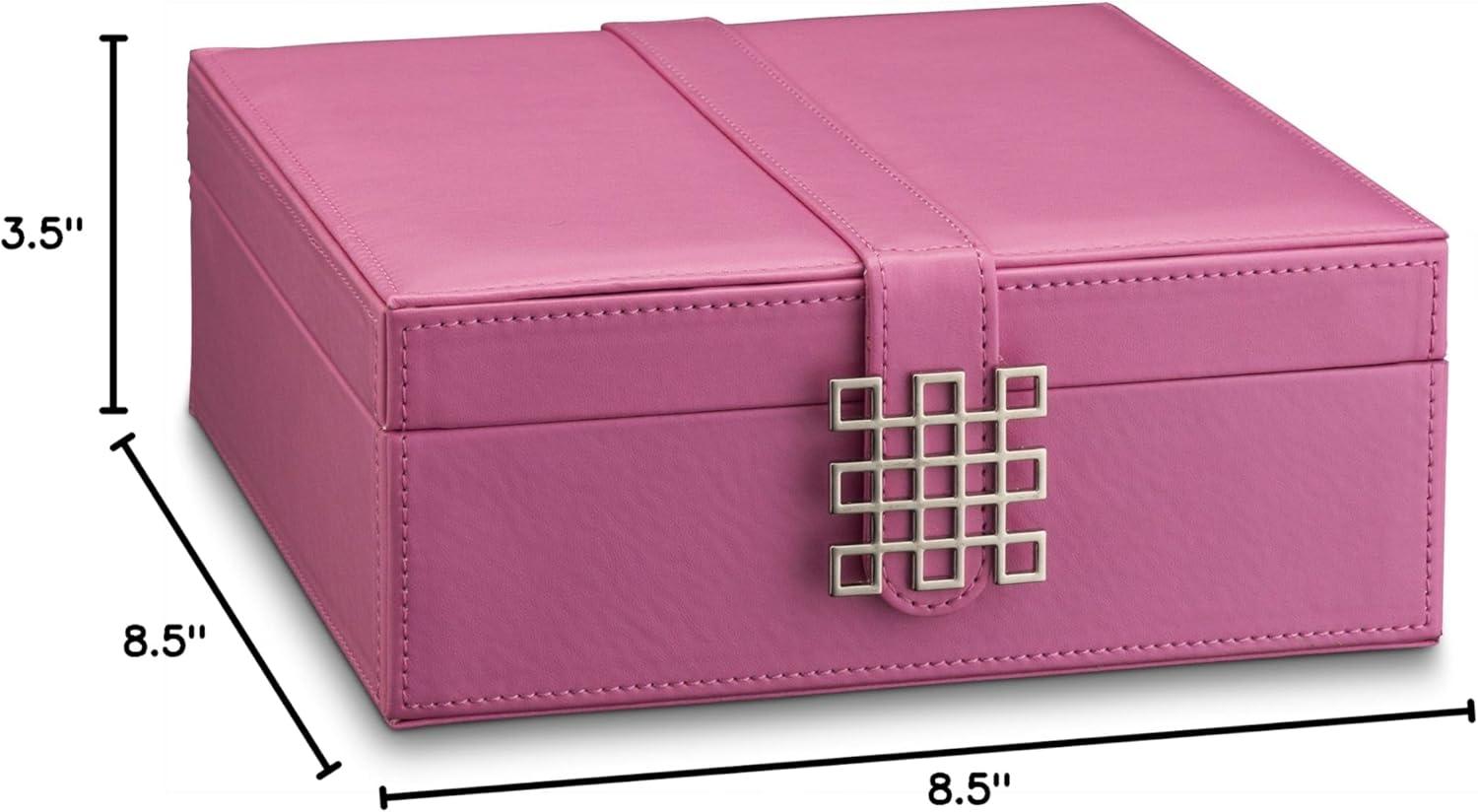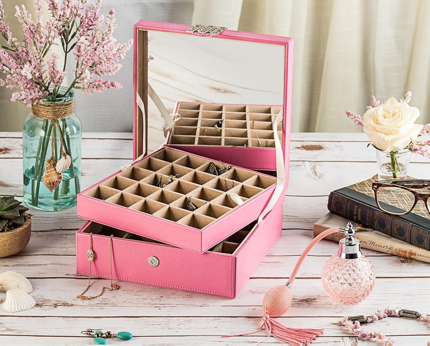 Glenor Co Earring Organizer - Classic 50 Section Jewelry Box/Case/Holder for Earrings, Rings, Necklaces, Jewelry, Cufflinks or Collections -2 Layer Small Compartments with Large Mirror - Pink(Pink)