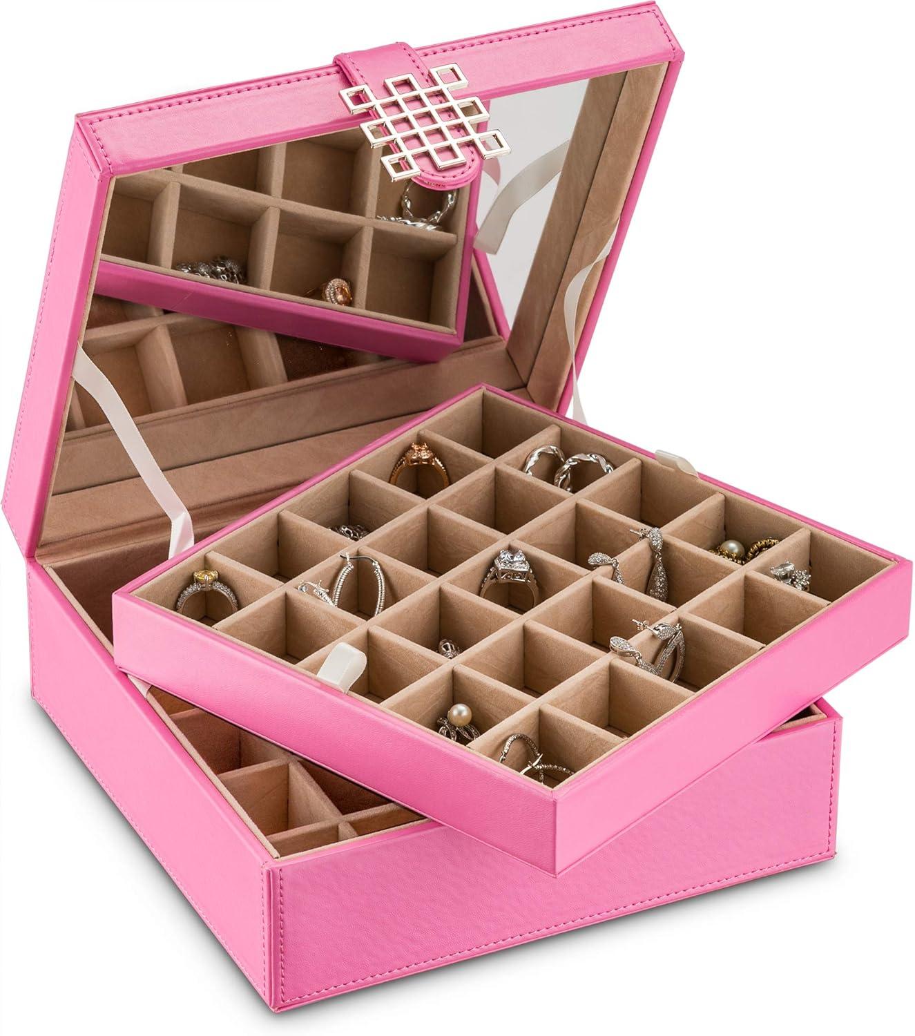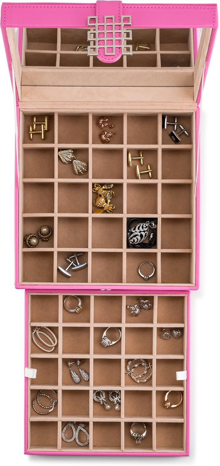 imageGlenor Co Earring Organizer  Classic 50 Section Jewelry BoxCaseHolder for Earrings Rings Necklaces Jewelry Cufflinks or Collections 2 Layer Small Compartments with Large Mirror  PinkBlack